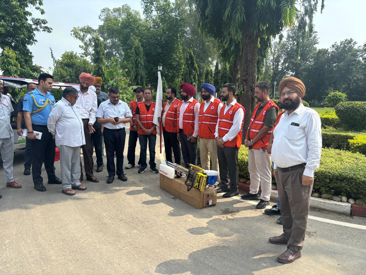 Shri Gulab Chand Kataria, Hon’ble Governor of Punjab inspecting the new Red Cross boats before flagging them off for deployment in the flooded border areas.