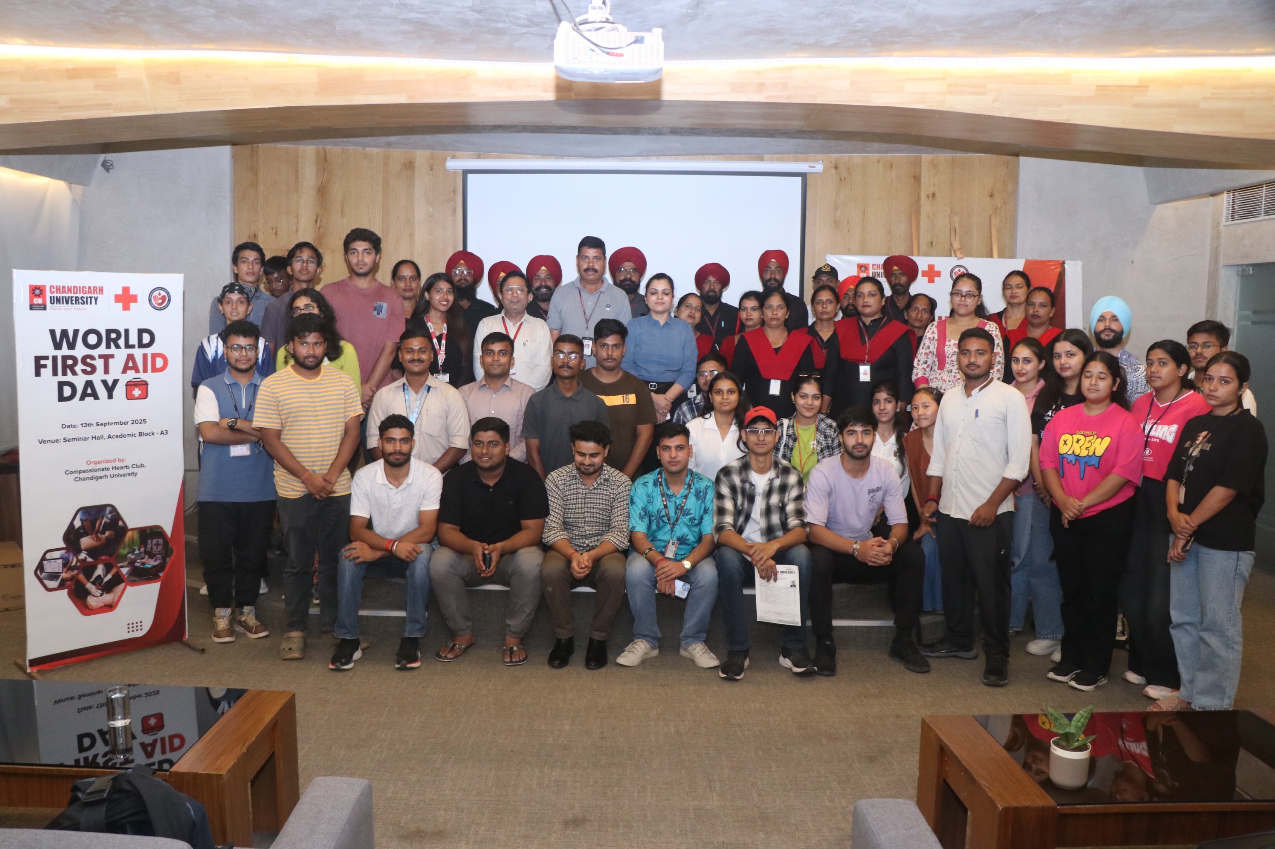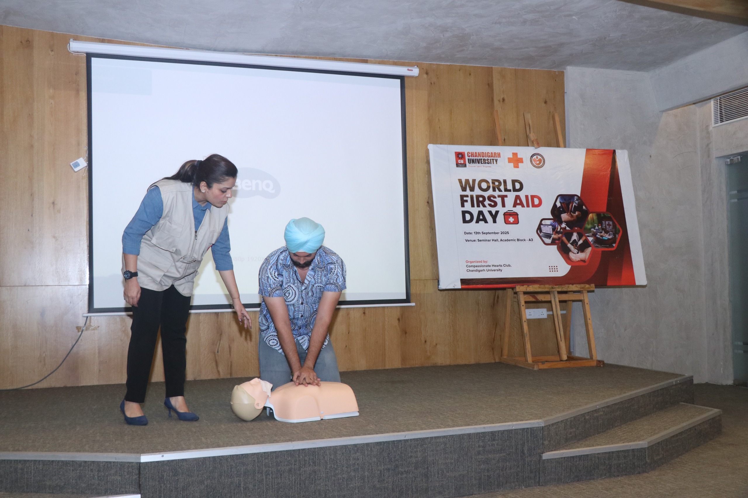 Under the able guidance of Secretary of IRCS, Punjab State Branch S. Shivdular Singh Dhillon IAS(retd),The Indian Red Cross Society, Punjab State Branch, in collaboration with Chandigarh University, successfully celebrated World First Aid Day. The event featured a comprehensive training session on Cardiopulmonary Resuscitation (CPR), imparted by a certified trainer from the Red Cross Punjab State Branch