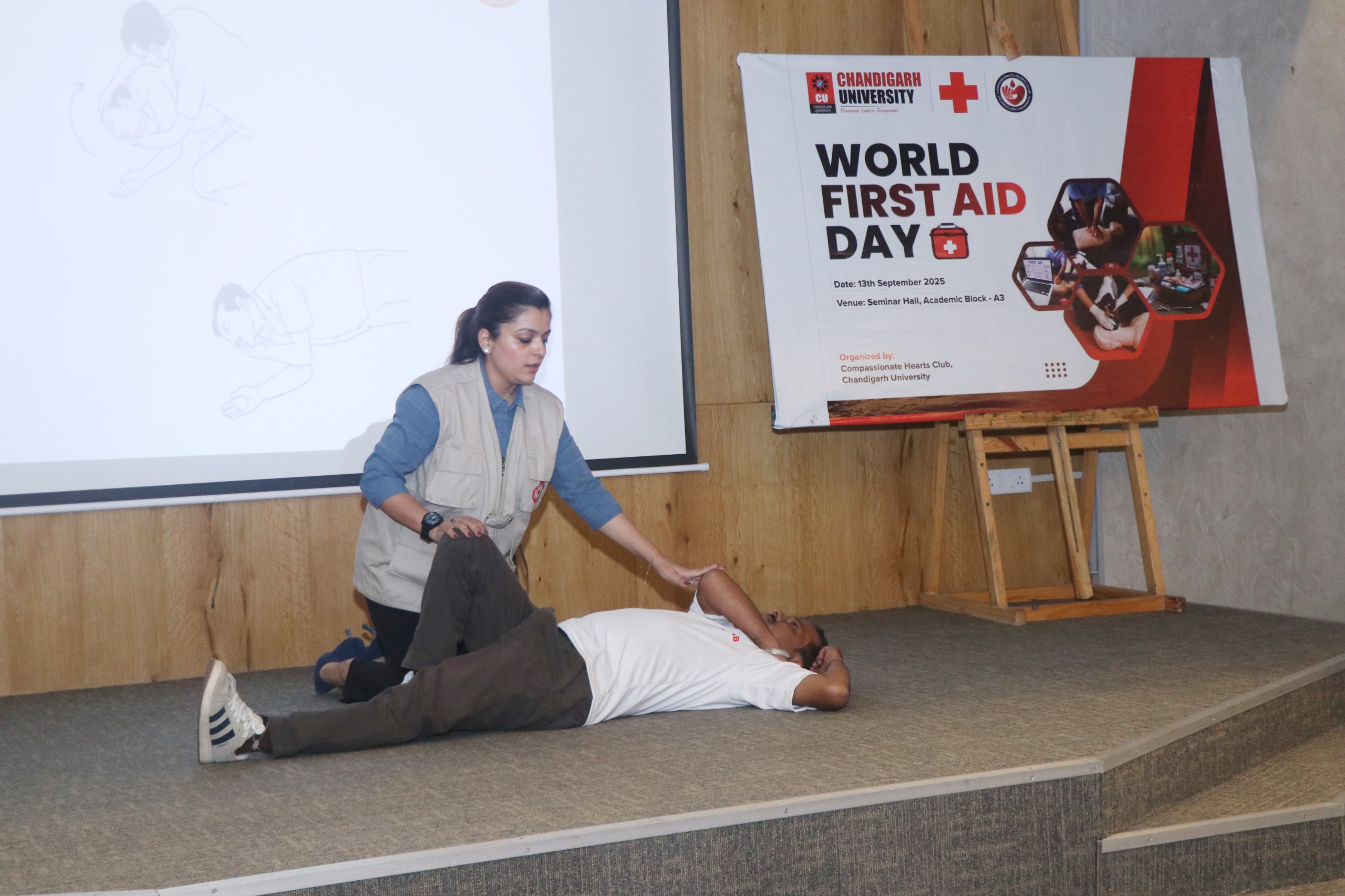 Under the able guidance of Secretary of IRCS, Punjab State Branch S. Shivdular Singh Dhillon IAS(retd),The Indian Red Cross Society, Punjab State Branch, in collaboration with Chandigarh University, successfully celebrated World First Aid Day. The event featured a comprehensive training session on Cardiopulmonary Resuscitation (CPR), imparted by a certified trainer from the Red Cross Punjab State Branch